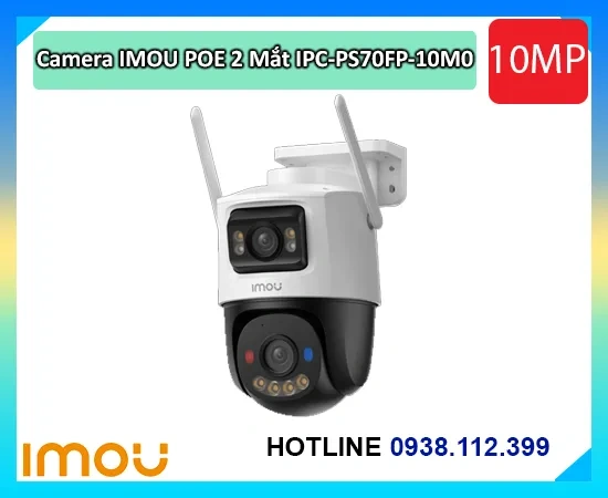 Camera IPC-PS70FP-10M0 là thiết bị giám sát ngoài trời 10MP với hai ống kính, hỗ trợ quay quét linh hoạt, công nghệ ban đêm Full Color, tích hợp mic và loa hai chiều, phát hiện con người và phương tiện, phù hợp lắp đặt cho gia đình, cửa hàng và văn phòng.